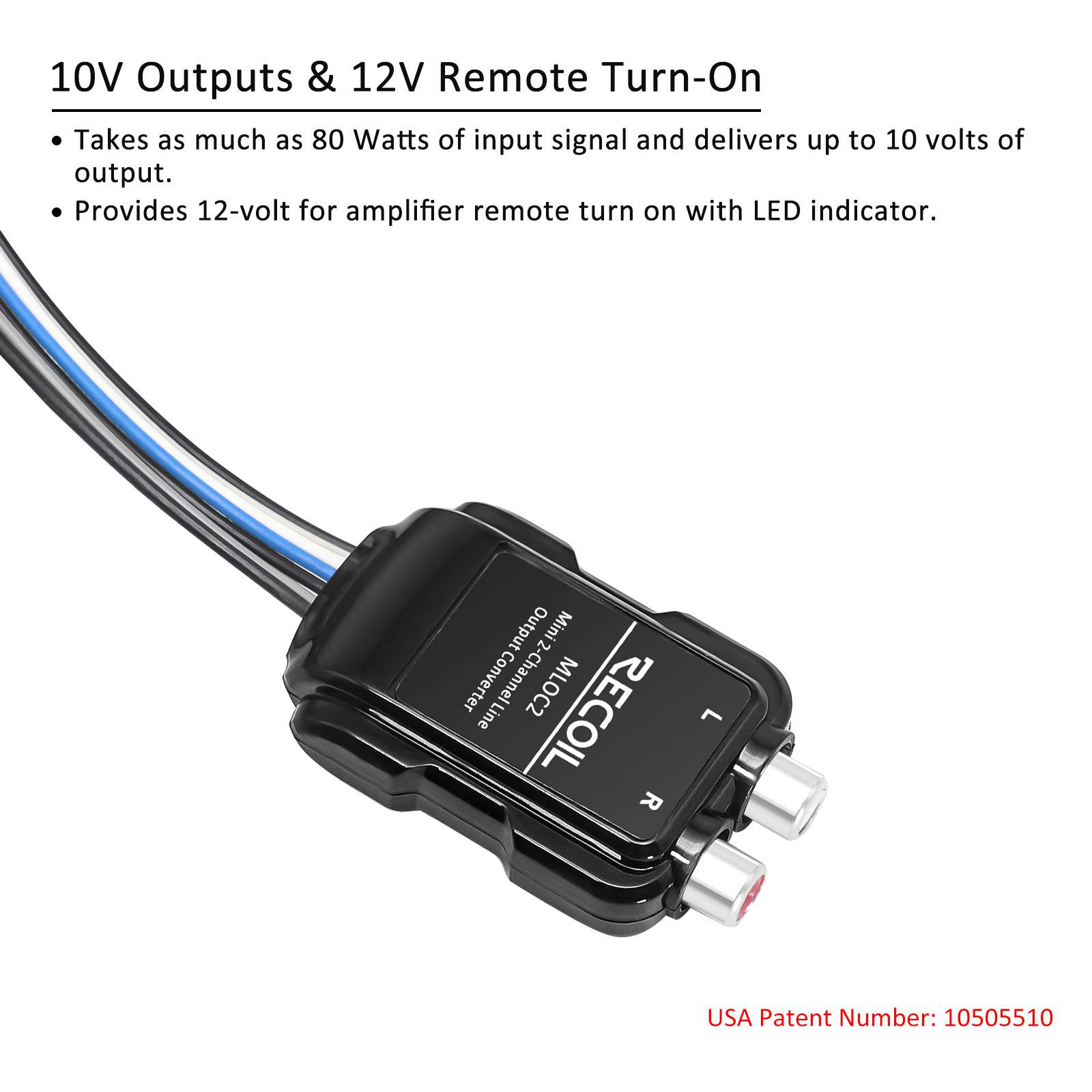 Adaptador de impedancia de 2 canales Entrada hasta 80V Salida hasta 10V Entrega 12V para encendido de amplificador Diseño super compacto