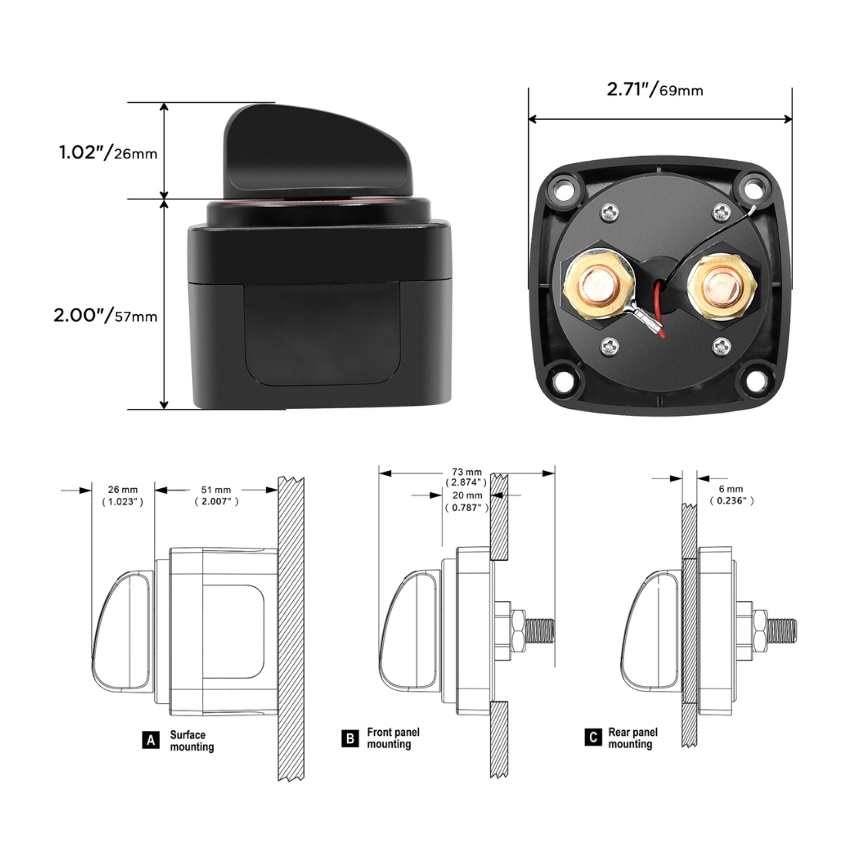 Llave de corte de 2 puntos 12 a 32V CC
